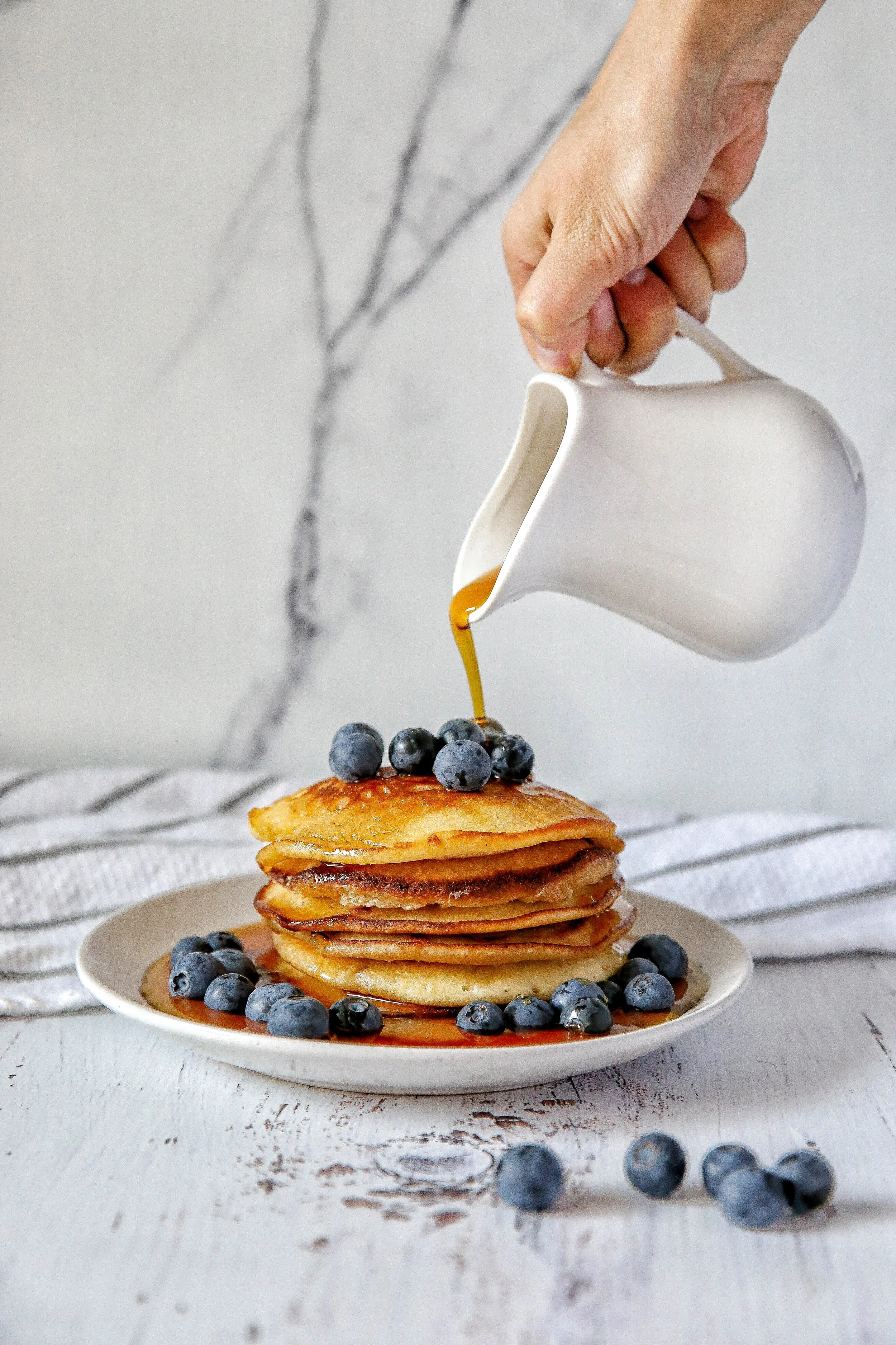 I love pancakes. Having them for a weekend breakfast brings back the nostalgia of my childhood, when my parents used to make pancakes for me on the weekends. They are so simple to make and you can have fun topping them with almost anything you like. For these I chose blueberries and maple syrup.